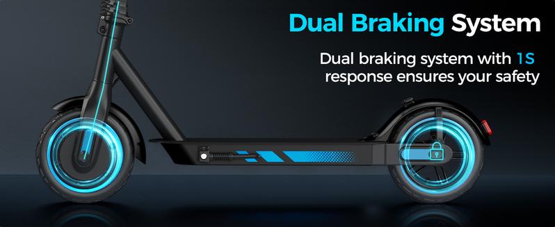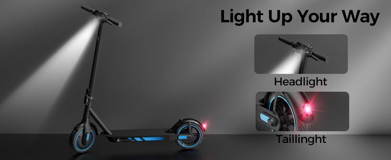 【Reliable Safety System and Strong Aluminum Frame】:Safe and reliable UL2272 certified and the frame is constructed from high-strength aluminum with a tensile strength of 450MPa.The adult scooter is equipped with warning taillights and super-bright headlights that can illuminate up to 15 meters of road during nighttime riding,disc brakes and ABS regenerative anti-lock brakes. The scooter also comes with explosion-proof 10inch inner honeycomb (solid) tires, which are maintenance-free